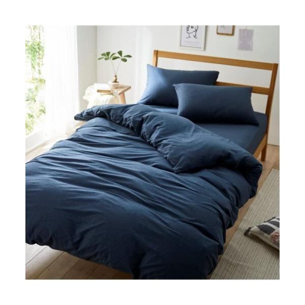 [ニッセン] 掛けふとんカバー 綿100%天竺ニット掛け布団カバー(Coco Feel) ネイビー シングル1