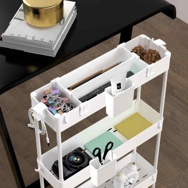 【どんな場面でも活躍】高級な材質は採用なので、高い安定性を誇ります。スリムボディーをして、部屋の隙間に自在に配置されています。トイレ収納、ベッドルーム、居間、子供部屋、キッチン、書店、美容室などの使用に最適して、収納力は抜群です。いろんなシーンで大活躍なキッチンワゴンです。