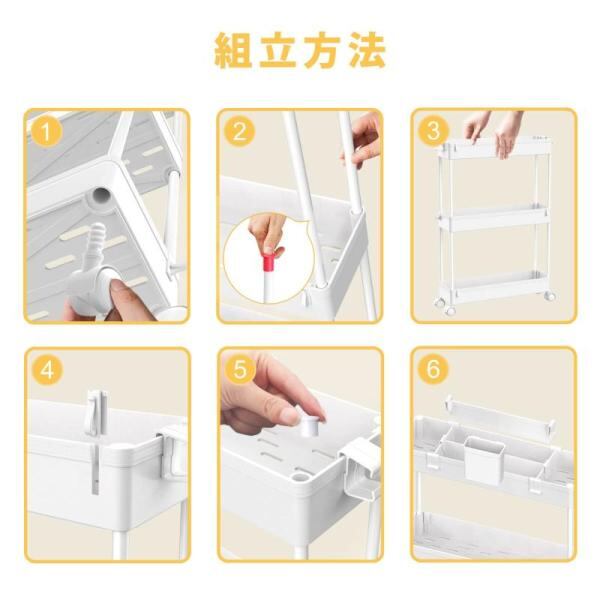 SPACEKEEPER キッチンワゴン 隙間収納 スリム 13cm 収納カップ 仕切板付き 多機能 小物 食品 調味料 キャスター付き 組立簡単 浴室 台所 冷蔵庫横 3段 ホワイト