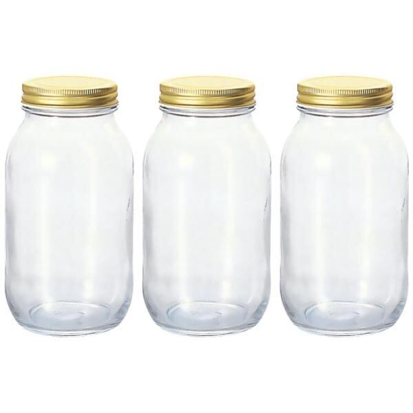 アデリア(ADERIA) ダブルキャップ 925ml 3個セット 日本製 保存容器 保存瓶 保存容器 ガラス キャニスター 密閉容器 調味料入 瓶 密閉 コーヒー豆 密封 長期保存 2重蓋 M6657