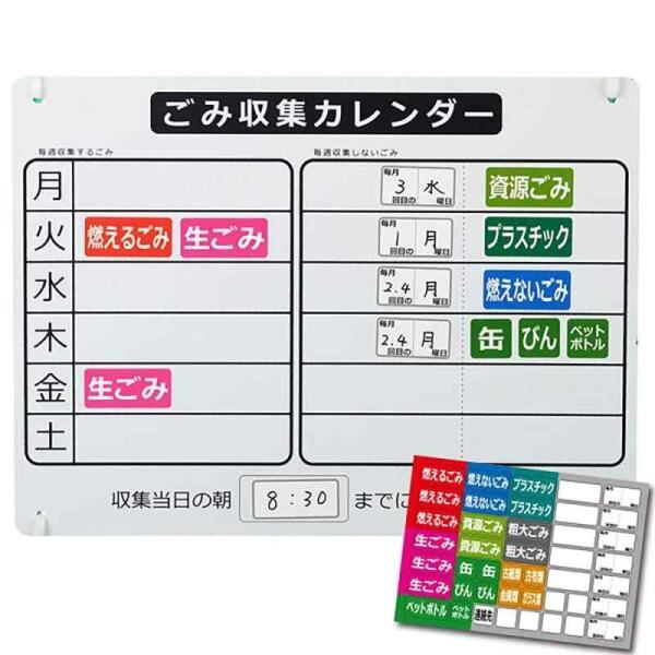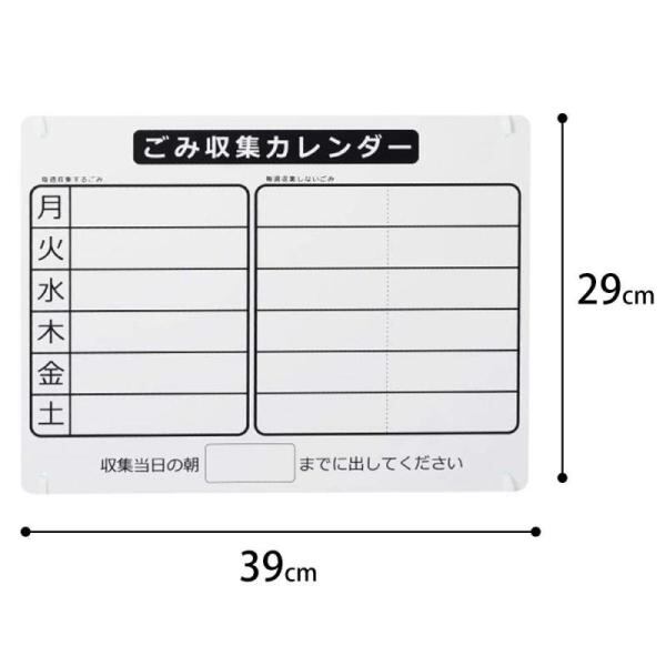 屋外でも使える強力シールを使って、曜日指定のゴミ分類を掲載することができます。