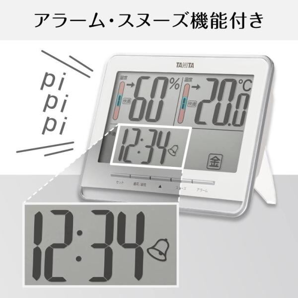 タニタ 時計 デジタル 大画面 ホワイト 温度 湿度 快適レベル 表示 カレンダー アラーム スヌーズ 機能 置き時計 掛け時計 両用 TT-5381