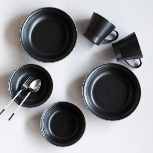 TAMAKI エッジライン ふたり暮らし ペア食器セット ブラック マグカップ350ml ボウルS 300ml カレー&パスタ皿700ml 電子レンジ・食洗機対応 T-926871