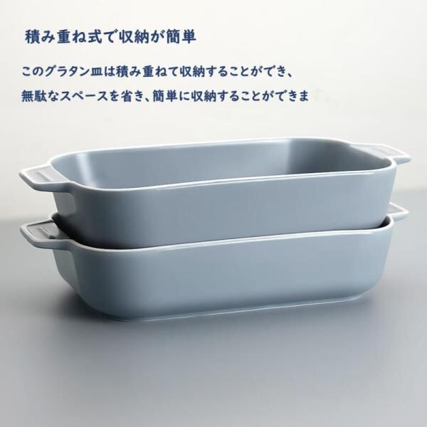 YFWOOD グラタン皿 2個セット 22×12×4.9cm 650ML×2 耐熱皿 くっつかない グラタン皿 大きめ 大皿 パン皿 青色 ブルー ス1