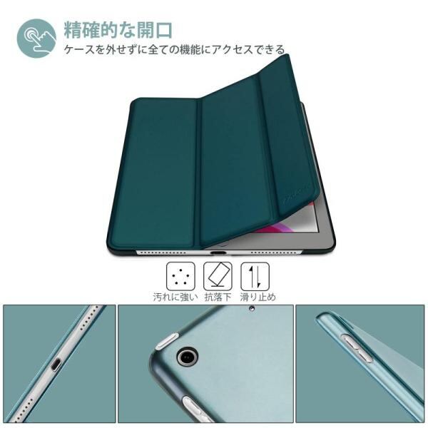 ProCase iPad 9/8/7 ケース (2021 2020 2019) 半透明バックカバー スマートカバー 軽量 三つ折りスタンド iPad 10.2" 対応 - エメラルド
