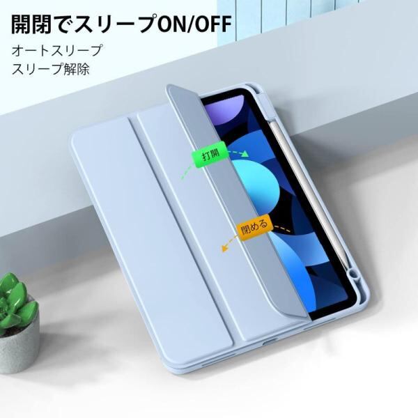 KenKe iPad Air 11インチ(M2) ケース 2024 iPad Air5/Air4 ケース 2022/2020 軽量 柔らかいシリコン TPU材質 ペン収納 iPad Air 第5/4世代 カバー 3段階折り畳み可 スタンド マグネット付き 自動スリープ機能 Appl