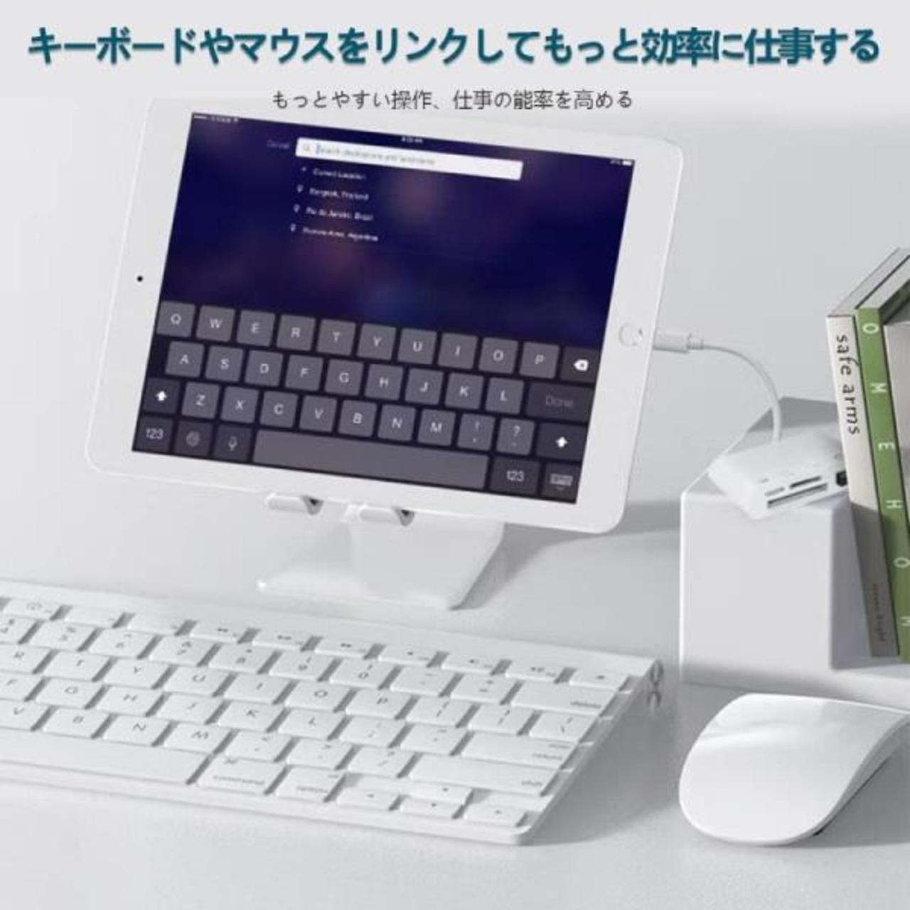 【4-in-1 SDカードリーダー】:4-in-1 iOS用 SDカードリーダーは1つのSDカードポート、1つのMicro SDカードポート、1つのUSBポート、1つの充電用IOSコネクタメスをサポートしています。写真やビデオをiPhone やiPadに簡単に転送できます。データを転送中しながら充電することもできます