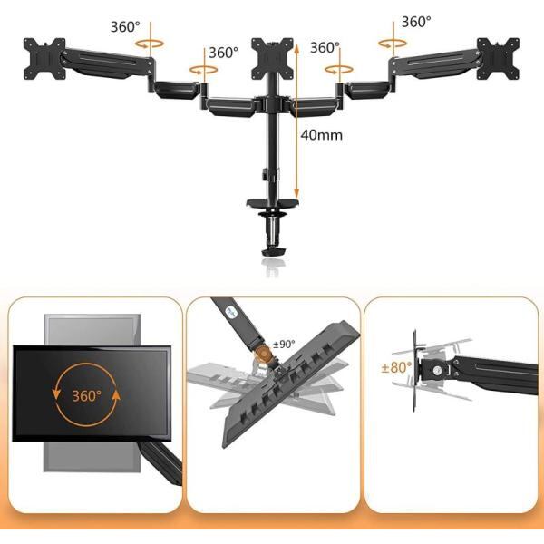 Pholiten 三画面モニターアーム PC モニター アーム 液晶ディスプレイ アーム ガススプリング式 ガス圧式 web会議に対応 17〜27インチ対応 耐荷重1-6kg (MD8003)