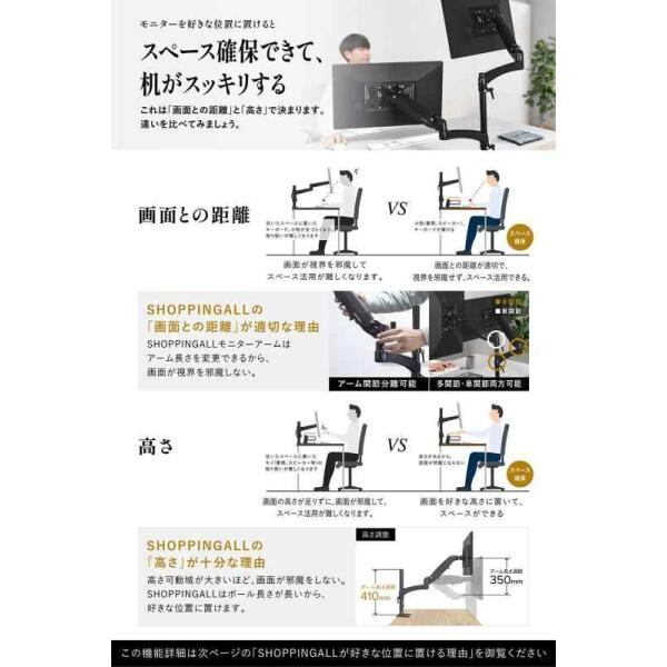 SHOPPINGALL 【モニターを好きな位置に置ける】【他社よりモニターが見やすい】 モニターアーム デュアル 2画面 ディスプレイアーム ガス ス1