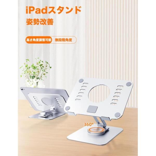 iPadスタンド KcBlueJP タブレット スタンド 折りたたみ式 360度回転 高さ角度調整可能 姿勢改善 滑り止め アルミ合金製 放熱性 軽量1