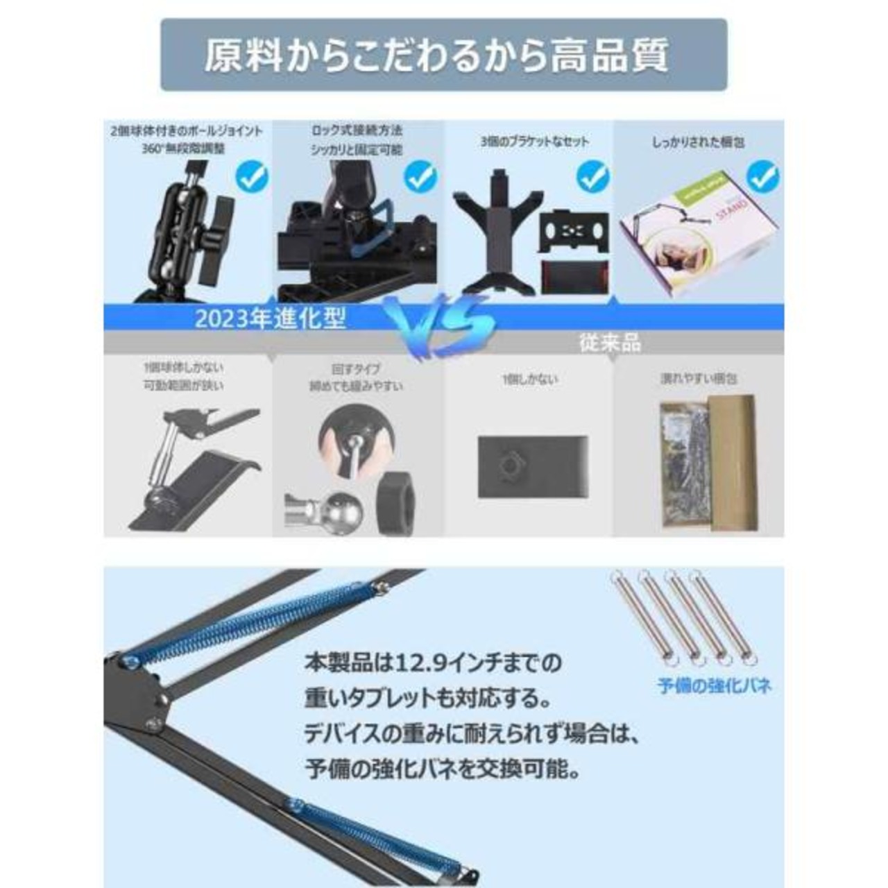 タブレット アーム 12.9 スタンド 寝ながら 4〜12.9インチ switch適用 Ipad Pro12.9 Mini Air Iphone 横/1