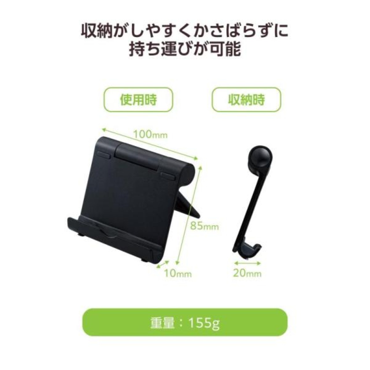 重い端末でも安定して置けるスマートフォン・タブレット用コンパクトスタンドです。