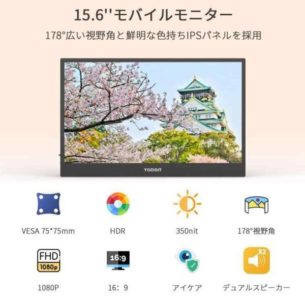 モバイルモニター モバイルディスプレイ ポータブルモニター Yodoit ゲームモニター 100%sRGB VESA対応 15.6インチ 1080P1