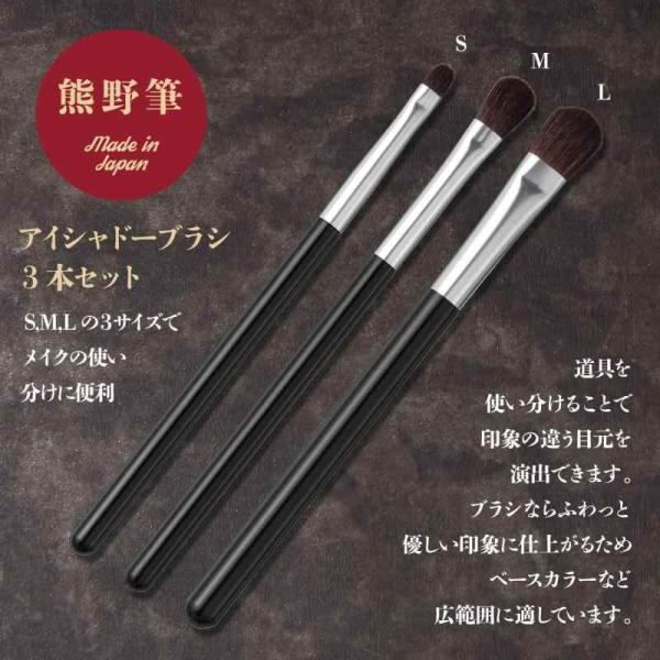 【アイシャドーブラシ3本セット】S、M、Lの3サイズでメイクの使い分けに便利。「馬毛」を使用し柔らかく適度なコシがある毛質のためふんわりとした仕上げやぼかしに適しています。