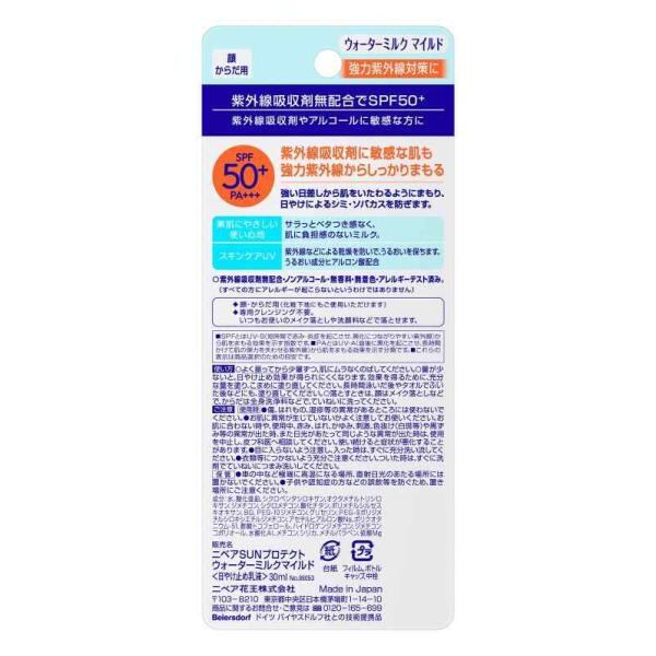 ニベアUVプロテクトウォーターミルクマイルドSPF50+ 30ml