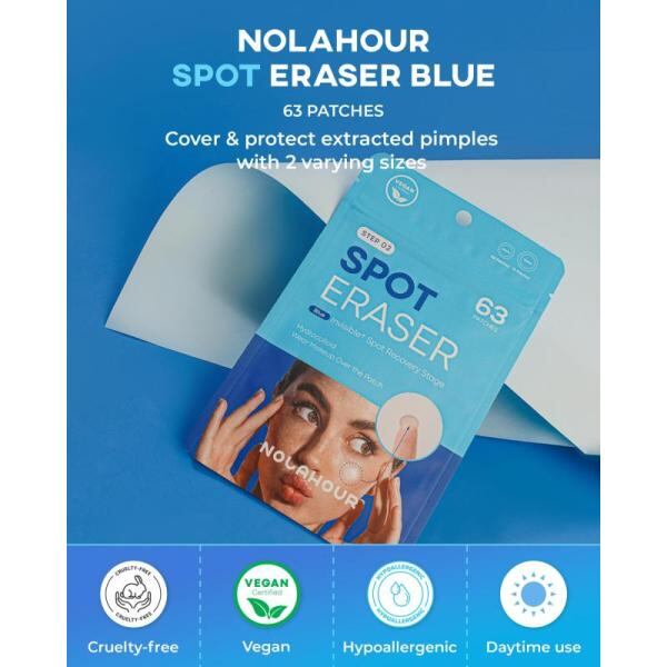 NOLAHOUR スポットイレイザーブルー 純度100% ハイドロコロイドパッチ 超薄型 目立たない メイクができる 63枚入り ニキビパッチ にきびパッチ