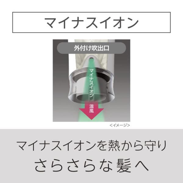 外付けマイナスイオンで、マイナスイオンに含まれる水分を熱から守り、髪にしっかり届いて、さらさらな髪へ(使用環境(季節・温度など)や個人差で、効果は異なります。)。