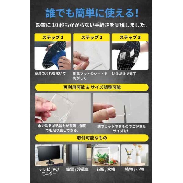 IFLY 耐震ジェル 2023年 耐震マット地震 転倒防止 防振マット耐荷重100kg 家具転倒防止 水洗い可能 静音マット 両面粘着 振動吸収 地震対策 防炎対策 静音ジェル 震度7まで対応 (12)