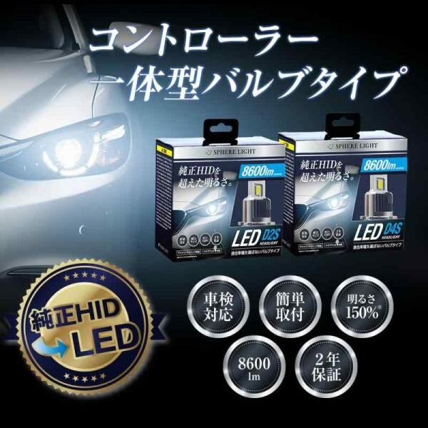 スフィアライト(Spherelight) 純正HID用LEDヘッドライト D2S 6000K(ホワイト) バルブタイプ DC12V用 8600ルーメン1