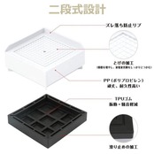 【排水設計】ズレ落ち防止リプの2面の切り欠きはかさ上げ台にたまった水を排出するために設計されます。こんな設計で冷蔵庫や棚などの足なしの家電・家具を載ることもでき、防錆防湿の役割を果たしています。色(グレー/ベージュ/ブラック/ホワイト)は目も立ちません。
