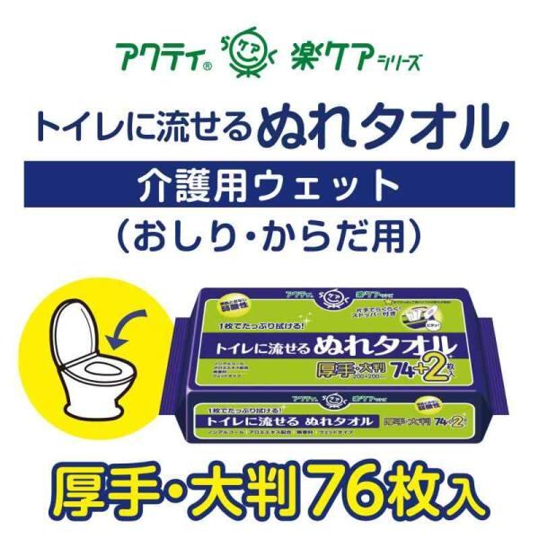 アクティ トイレに流せる ぬれタオル 大判・厚手 20×20cm 76枚 (片手でらくらく取出し口ストッパー)