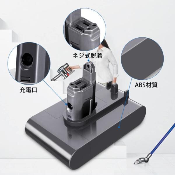 【4000mAh大容量】 22.2v 4000mAh大容量は純正品によりもっと長い稼働時間を保ちます。毎日手軽に掃除ができ、初心者もご安心利用ください。高温状態のバッテリーは一時的に充電できない可能性がありますので、完全に放電したばっかりのバッテリーを直ぐに充電されないでください。20分ほど冷却してから充電したほうがいいです。