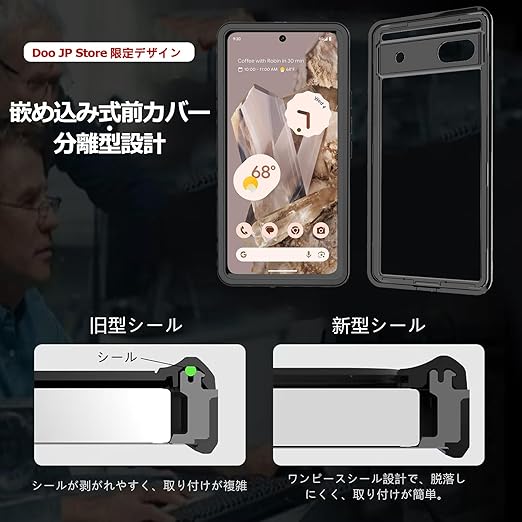 「Doo」Google Pixel 8a 防水ケース グーグル ピクセル8a 5G 完全防水カバー IP68防水規格取得 ピクセル8a クリアケース SoftBank SIMフリー対応 ワイヤレス充電対応 米軍MIL規格 耐衝撃 軽量 脱着簡単 持ちやすい 滑り止め すり傷防止 キズ・汚れ・塵・砂・おがくず防止 完全防水 ケース Google Pixel 8 5G 6.1インチ対応(ブラック)1