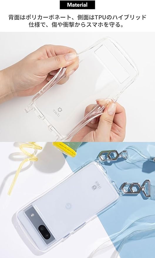 iFace Hang and Google Pixel 7a 専用 ケース クリアケース【アイフェイス グーグルピクセル 7a カバー 透明ケース ショルダーストラップをつけられるケース】1