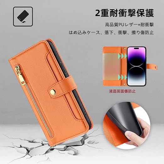Google Pixel 8A ケース Google Pixel 8A カバー【COKOVI】グーグル ピクセル 8A ケース 手帳型 カードホルダー付き 財布型 サイドマグネット 首掛け 肩掛け ショルダーストラップ おしゃれ チャックポケット付き 御洒落 女性 可愛い スタンド機能 高級PUレザー 耐衝撃 (オレンジ, Google Pixel 8A)1