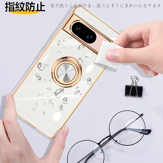 Google Pixel 8 ケース リング付き リング 米軍MIL規格 耐衝撃 ピクセル8 カバー メタリックな質感 磁気吸着 携帯カバー TPU 軽量 人気 スタンド機能 車載ホルダー対応 360°回転 黄変防止 指紋防止(ホワイト)1