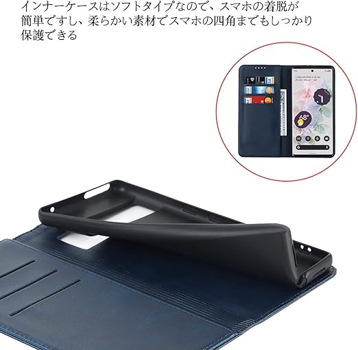 Google用 pixel 7 ケース 手帳型 pixel7 ケース 手帳型 au SIMフリー softbank全対応 ピクセル 7 カバー グーグル ピクセル7 カバー pixel7 スマホケース 手帳型 カバー pixel7ケース 財布型 適用 case 【iCoverCase】 合成皮革 内蔵マグネット ケース 手帳型 カードケース スマホケース 携帯カバー カード入れ スタンド機能 落ち着いた色 レトロ ネイビー1