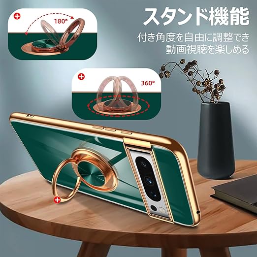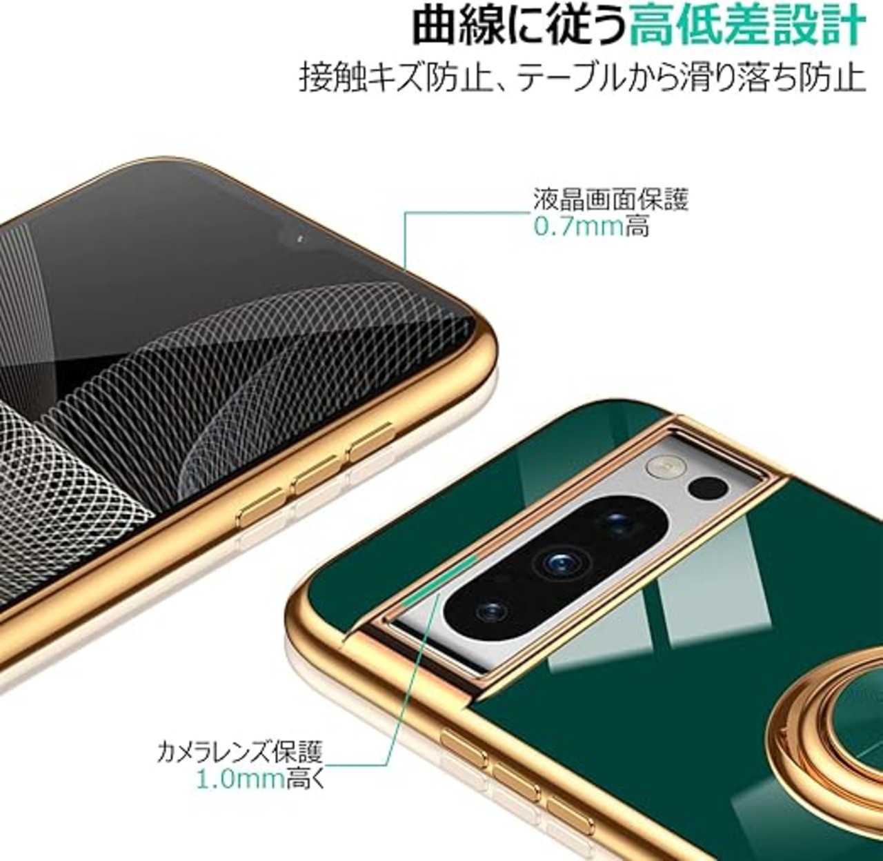 Google Pixel 8 ケース リング付き 耐衝撃 落下衝撃吸収 tpu シリコン 軽量 薄型 メッキ加工 ストラップホール付き ピクセル 8 ケース 全面保護 スタンド機能 車載ホルダー対応 360°回転 耐久 落下防止 人気 携帯カバー 緑 ZW72-251