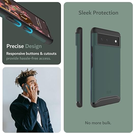TUDIA Google Pixel 6 ケース、「マージ」米軍MIL規格 2層保護 耐衝撃性超薄型TPU保護ハード Pixel6 ケース - ハンターグリーン1