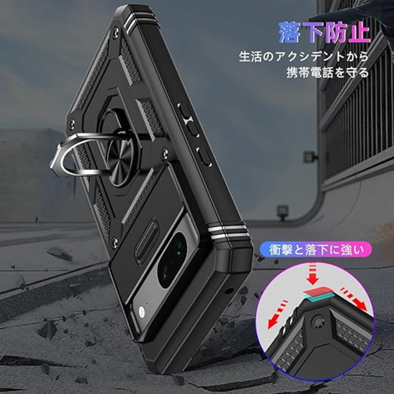 JSCOMYAP Google Pixel 8 ケース用, Pixel8 ケース ピクセル 8 スマホケース グーグルピクセル8 携帯ケース 360°回転 メタルリング スタンド機能 車載ホルダー対応 耐衝撃 横置き機能 Case Cover Google8 Eight 背面 カバー 6.2インチ メンズ(黒 ブラック)1
