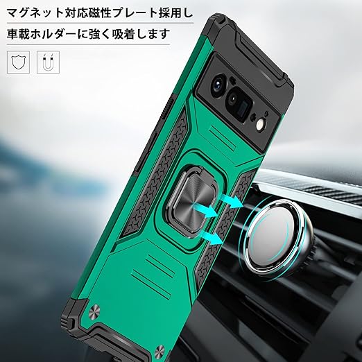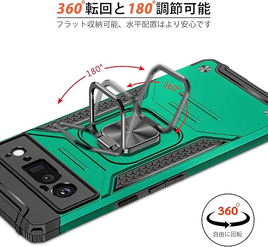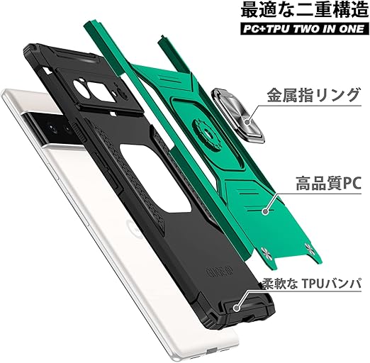 Google Pixel 6 pro ケースリング 耐衝撃 衝撃吸収 Pixel 6 pro 携帯カバー 米軍MIL規格取得 TPU+PC 指紋防止 車載ホルダー対応 スタンド機能 防塵 薄型 軽量 落下防止 擦り傷防止 レンズ保護 ?86-APixel6p-051