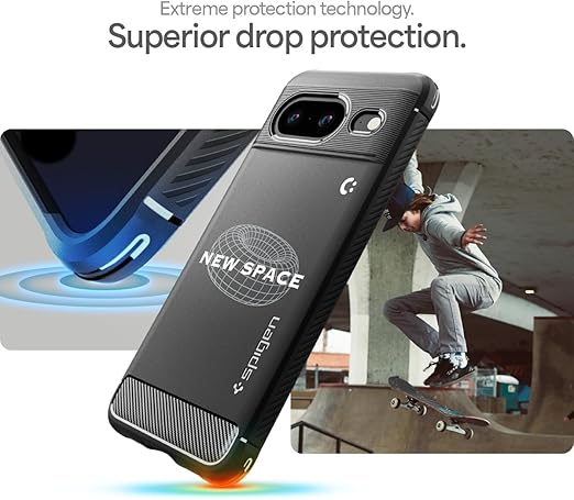 Spigen コラボレーション Google Pixel8 ケース TPU ソフトケース 米軍MIL規格取得 耐衝撃 衝撃吸収 傷防止 カメラ保護 Qi充電 ワイヤレス充電 ラギッド・アーマー ACS08371-XP05062 (マット・ブラック/ニュー・スペース)1