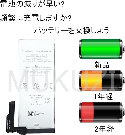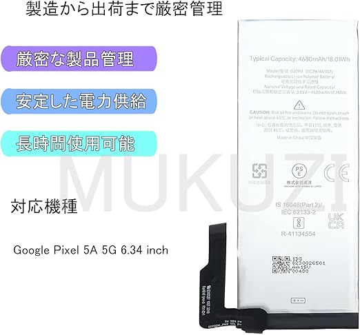 MUKUZI バッテリー Google Pixel 5A 5G 互換 バッテリー G27FU 電池 4620mAh1