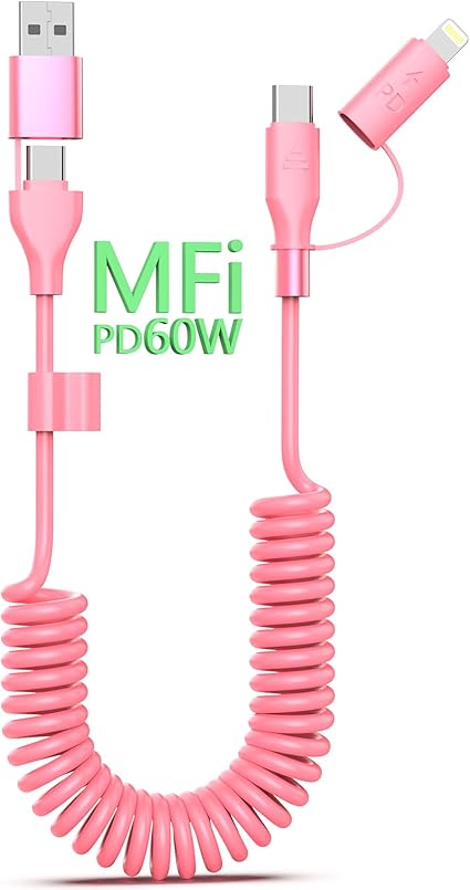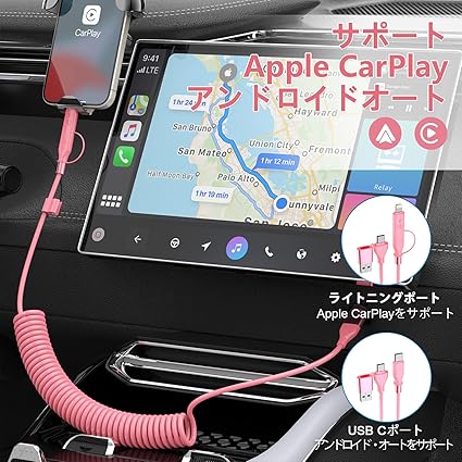【2024新版】4in1 充電ケーブル 巻き取り iPhone 充電ケーブル タイプC 60WPD対応 急速充電 1.5m Carplay 高速データ転送 Type C to Type C USB C ライトニングケーブル iPhone/MacBook Pro/iPad/Surface Pro/Asus/Google Pixel/Galaxy対応-ピンク1
