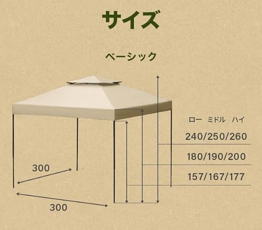 【サイズ】展開時…約 幅300×奥行き300×高さ約240~260cm 収納時…約 幅121×奥行き17×高さ21cm