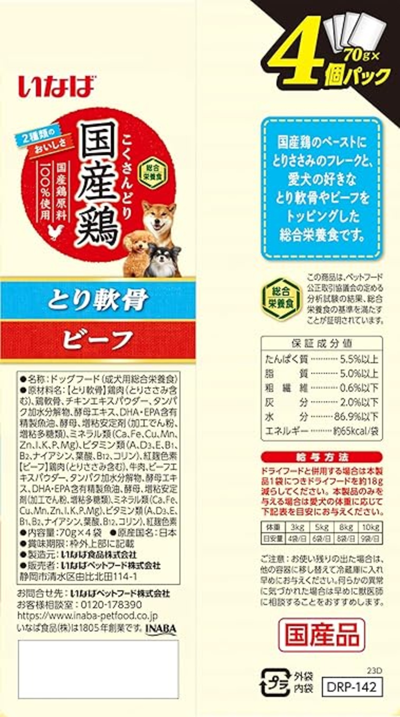 いなば 国産鶏 とり軟骨・ビーフバラエティ 70g×4袋 2個セット1