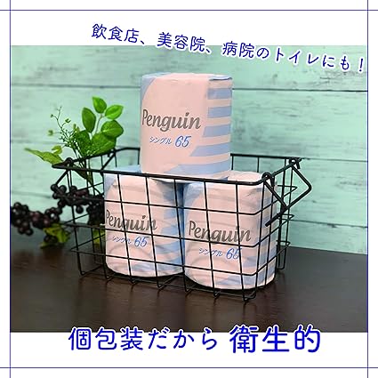【ケース販売】丸富製紙 ペンギン トイレットロール 個包装 65m 1Rシングル 60 個入り1