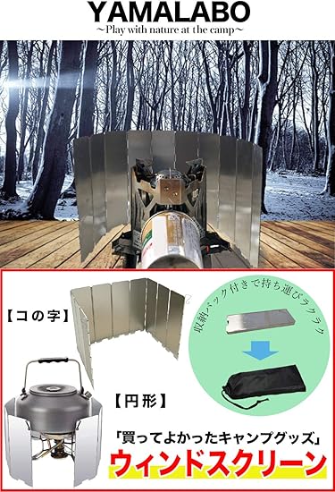YAMALABO 焚き火シート スパッタシート 耐火シート ウィンドスクリーン 風防 防風 キャンプ 風除け 焚き火台シート かぜよけ アウトドア 防風板 軽量 収納袋 付き (風除板)