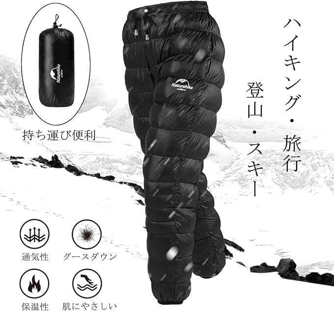 [Naturehike] ダウンパンツ 防寒 暖パンツ メンズ レディス 超軽量 冬用 800FP あったか 冬服 丸洗い ボトムス アウトドア用 登山 コンパクト ロング スキー 撥水 防風 保温 5℃〜-15℃ 肌触り良い 男性 女性 収納袋付き…