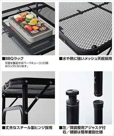 [山善 キャンパーズコレクション] メッシュテーブル (キャンプ アウトドア) 熱・水に強い 折りたたみ式 軽量 (焚火 バーベキュー) タフライト ファイアープレイス テーブル TLFT-100/ BBQ タフライトテーブル TLT-1280B1