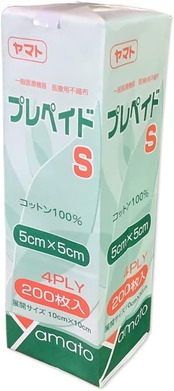 大和工場 ヤマト Yamato コットン不織布ガーゼ プレペイドS 4PLY(4枚重ね) 接着剤不使用 コットン100% キッチンペーパー 水や油の拭き取りに (5cm×5cm 200枚入)1
