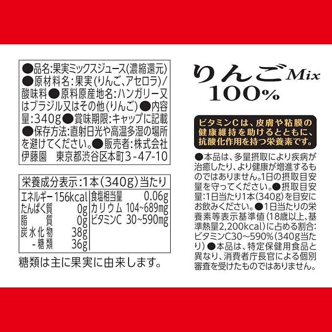 伊藤園 ビタミンフルーツ りんごmix 100% 340g×24本1