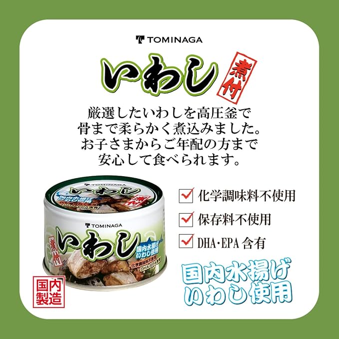 トミナガ いわし 煮つけ 缶詰 DHA EPA 含有 140g ×6個 [ 富永 国内水揚 国内加工 イワシ缶 缶詰 TOMINAGA ]1
