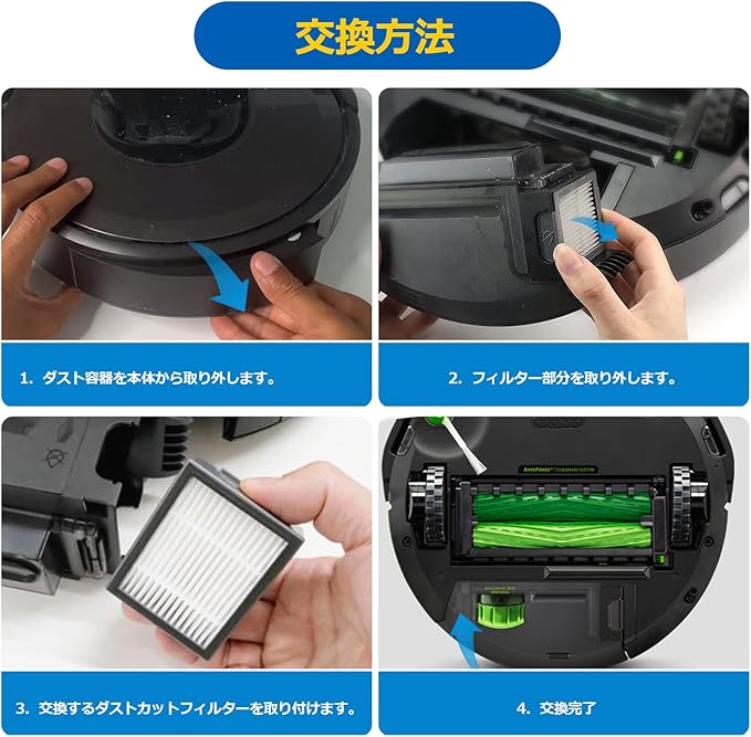 ルンバ フィルター ルンバe5 e6 e7 i7 i7+ i7Plus i3 i3+ i3Plus i5+ i2 i1 i6 i6Plus i6+ j7 i8 i8Plus i8+ 用 ダストカットフィルター 4651374 互換品 8点セット (コンボシリーズのj7+ J9+非対応)1