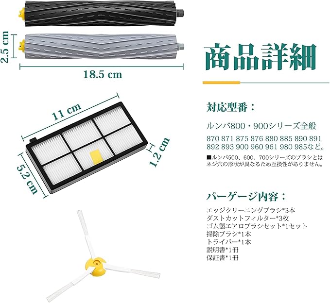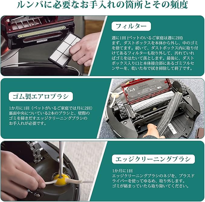 ルンバ 800 900 シリーズ 消耗品セット エッジクリーニングブラシ フィルター エアロブラシ エクストラクター メンテナンスセット 交換用 予備 修理1