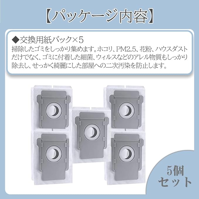 アイロボット(iRobot) ルンバ用 クリーンベース 4648034 交換用紙パック S9+ ロボット掃除機 J7+ ゴミ袋 I7+ ゴミパック I3+ 互換 4639331対応 4794486 交換アクセサリ I2 消耗品 combo J7+ 交換 5枚セット E5/i7+/i3/S7+/S9/S9+1